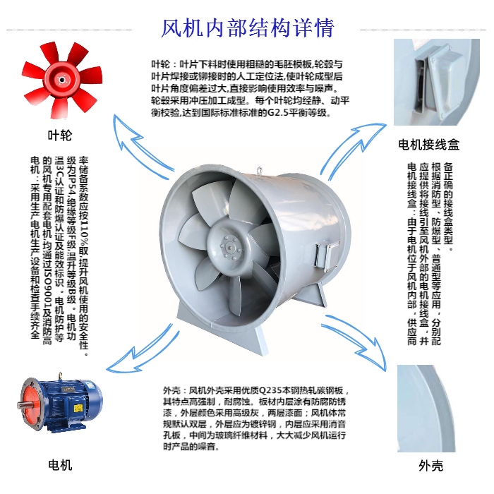1、氣流脈動多引起風機機殼、進出口管道及機殼基礎(chǔ)振動,對軸承及轉(zhuǎn)子機械振動的影響較小,起振頻率主要為與轉(zhuǎn)子主頻無關(guān)的低頻成分。3、當屋頂軸流消防排煙風機動葉或靜葉磨損、破裂產(chǎn)生氣流脈動時,其氣流脈動會與機械振動相耦合,此時屋頂軸流消防排煙風機的氣流脈動故障頻率中會出現(xiàn)較大的葉片通過頻率及其諧波,且軸承及轉(zhuǎn)子也會出現(xiàn)故障頻率。